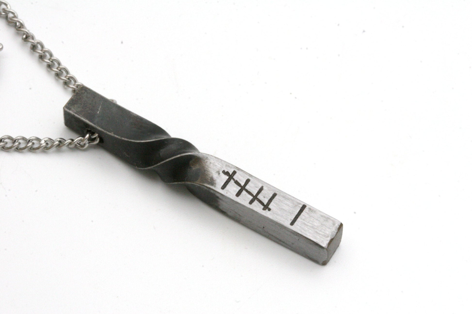 Commemorate your 6th wedding anniversary with this simple and modern pendant that is stamped with 6 tally marks. Show your love is as strong as Iron!