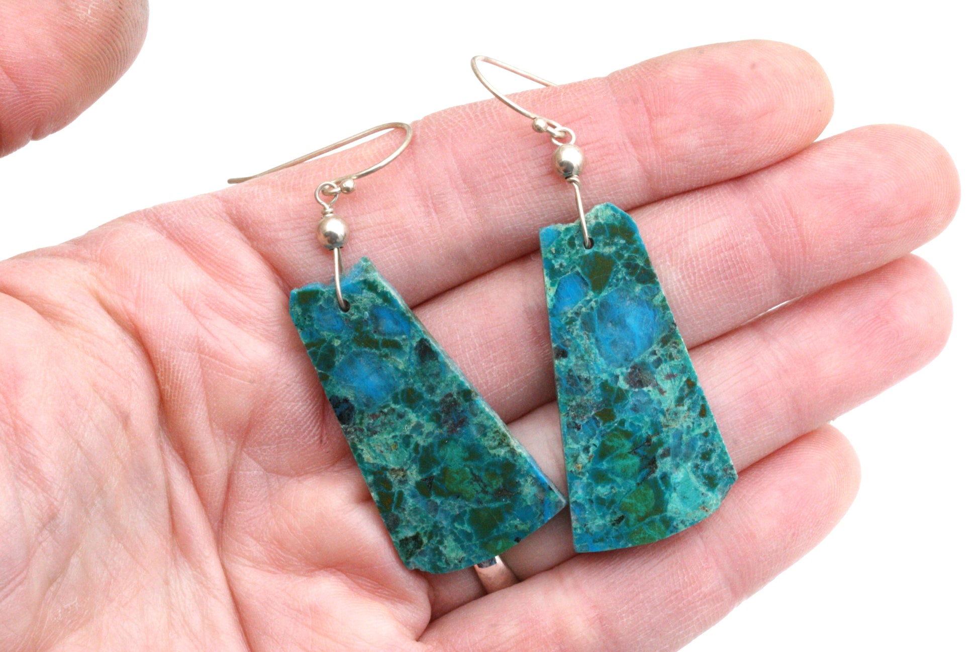 Chrysocolla Malachite Slab Earrings: Sterling Silver Boho Style