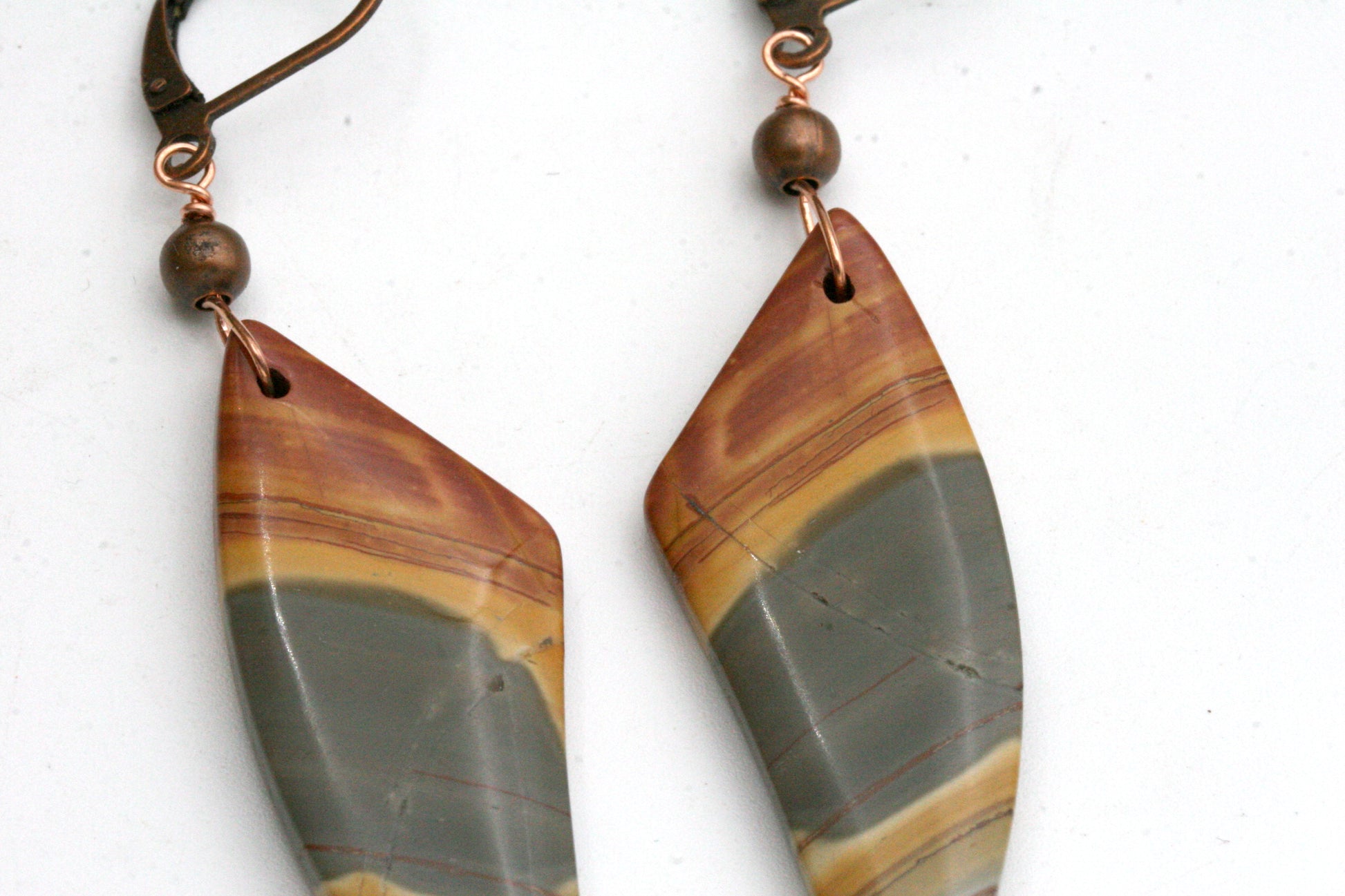 Red creek jasper and copper earrings.