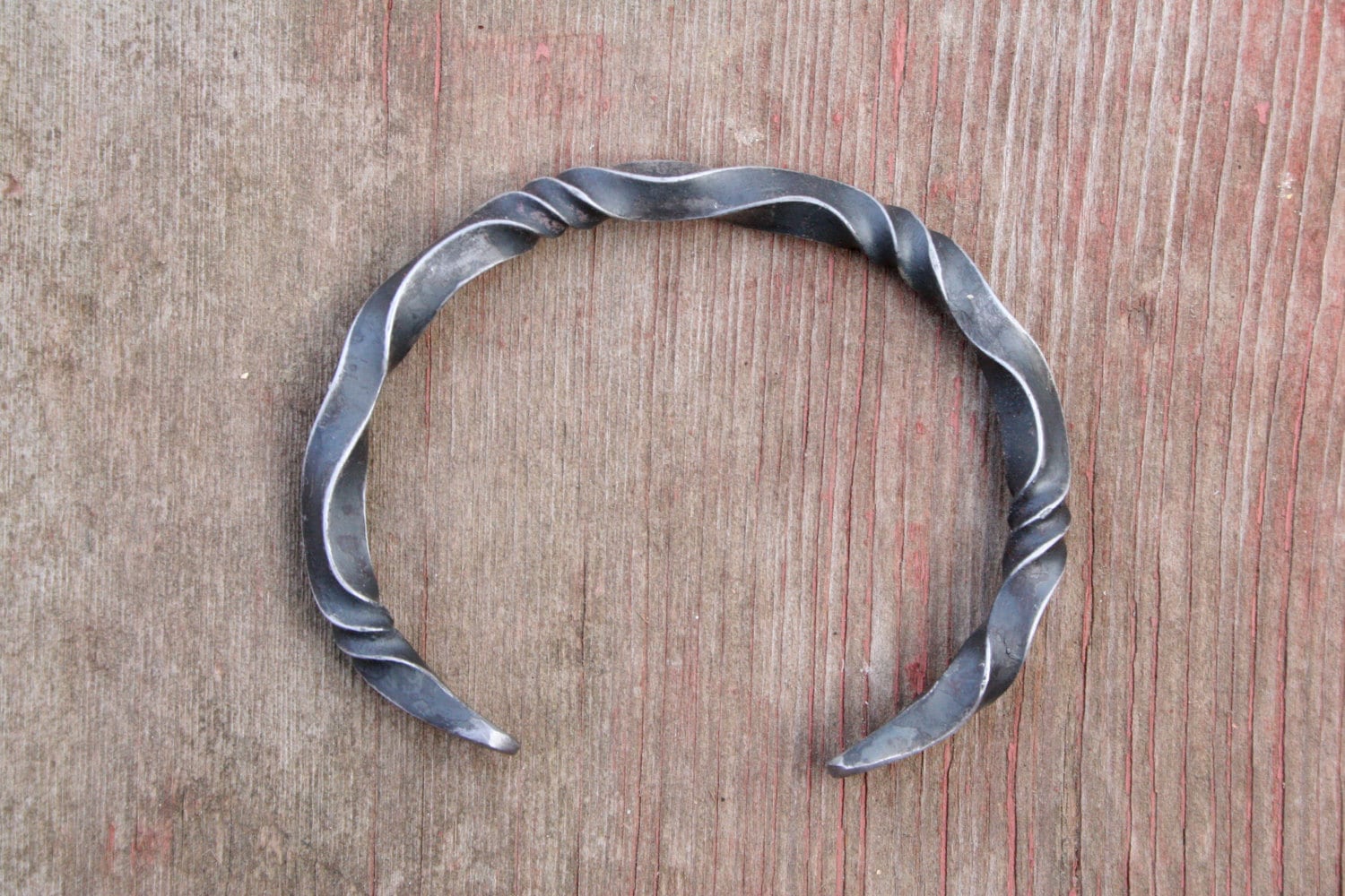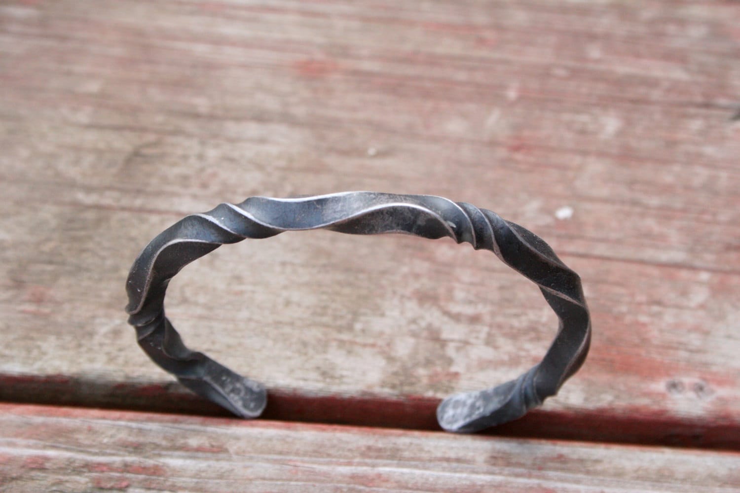 Dramatic and sure to be noticed...each bracelet is handmade by me in a coal forge, shaped on the anvil, brushed, and finished with wax to prevent rusting and add shine.....a one of a kind piece of Art.