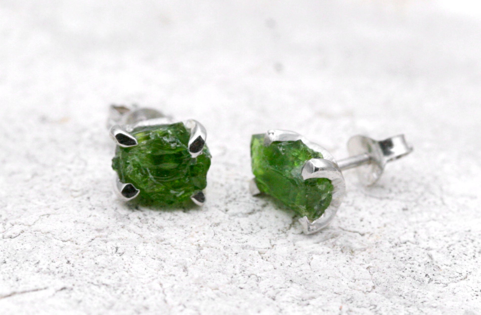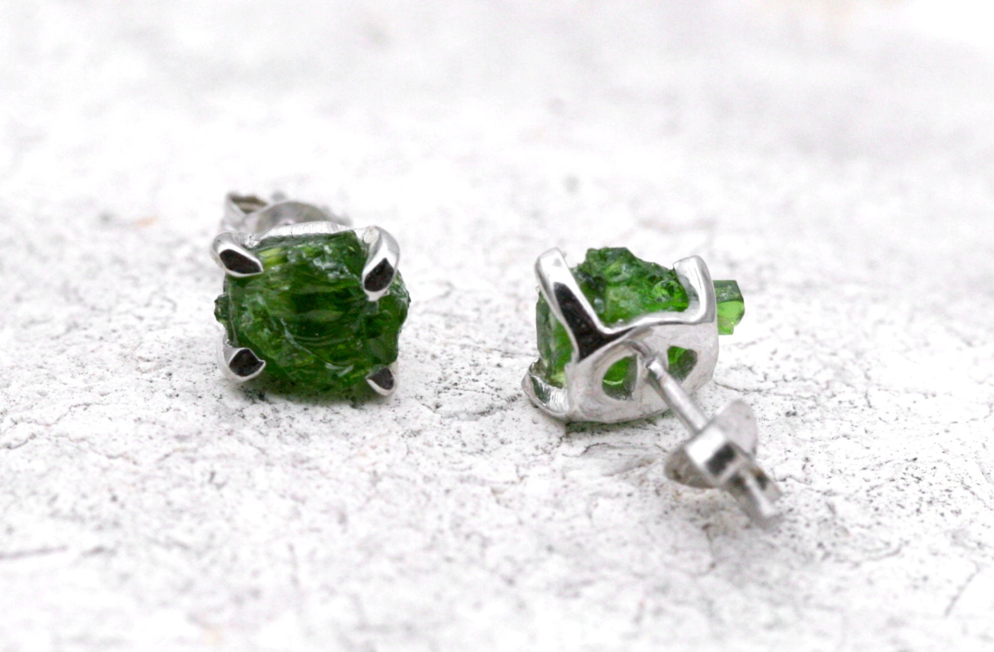 Absolutely beautiful, green chrome diopside stones make up these stud earrings.